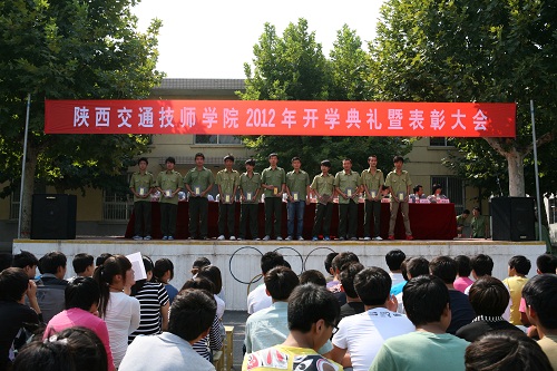 九月,秋高气爽,硕果飘香。陕西交通技师学院隆重举行2012年秋季开学典礼,欢迎同学返校,总结新生军训工作。预备役141师作战部部长陈东应邀参加,学院领导、教学部门负责人出席了会议。