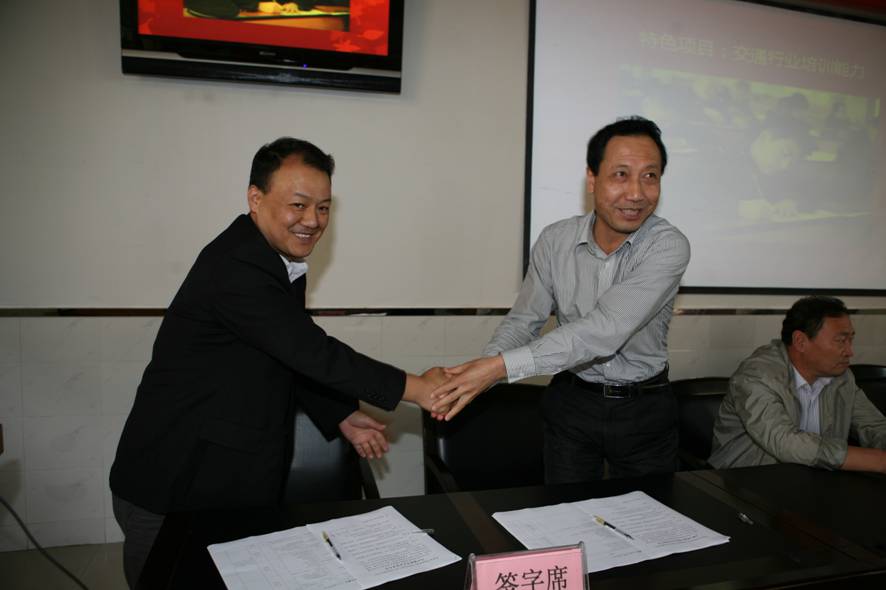 杜建忠院长分别与示范校建设三个重点专业(汽车维修专业、公路与桥梁工程专业、物流管理专业)和两个特色项目(交通行业培训能力、学生职业素质教育体系建设)的负责人签订了建设项目责任书。汽车维修专业项目建设负责人孙文平代表各项目建设小组表示:我们将更新观念、转变思想,在示范校建设中做出贡献!