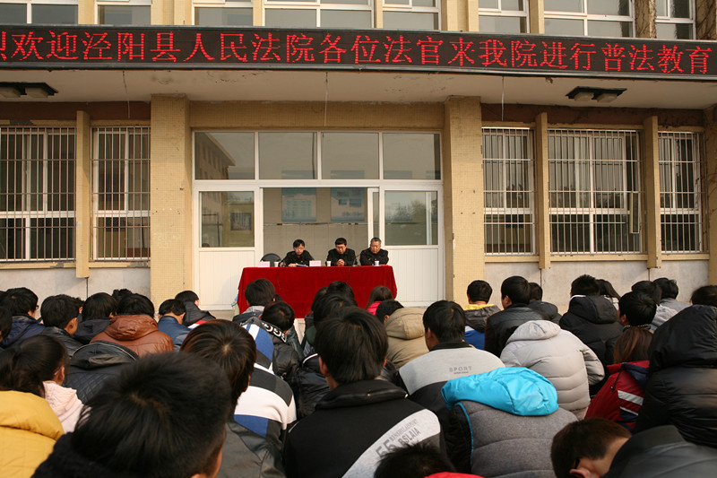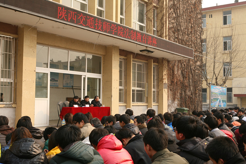 为营造良好的法制教育环境和氛围,增强师生法律意识,构建和谐校园。12月12日下午,陕西交通技术学院由院安委会组织,保卫处、学生处、团委承办,特邀泾阳县法院院长吕子石、刑事厅王浩然法官等人,来校为1000多师生进行法制教育讲座。