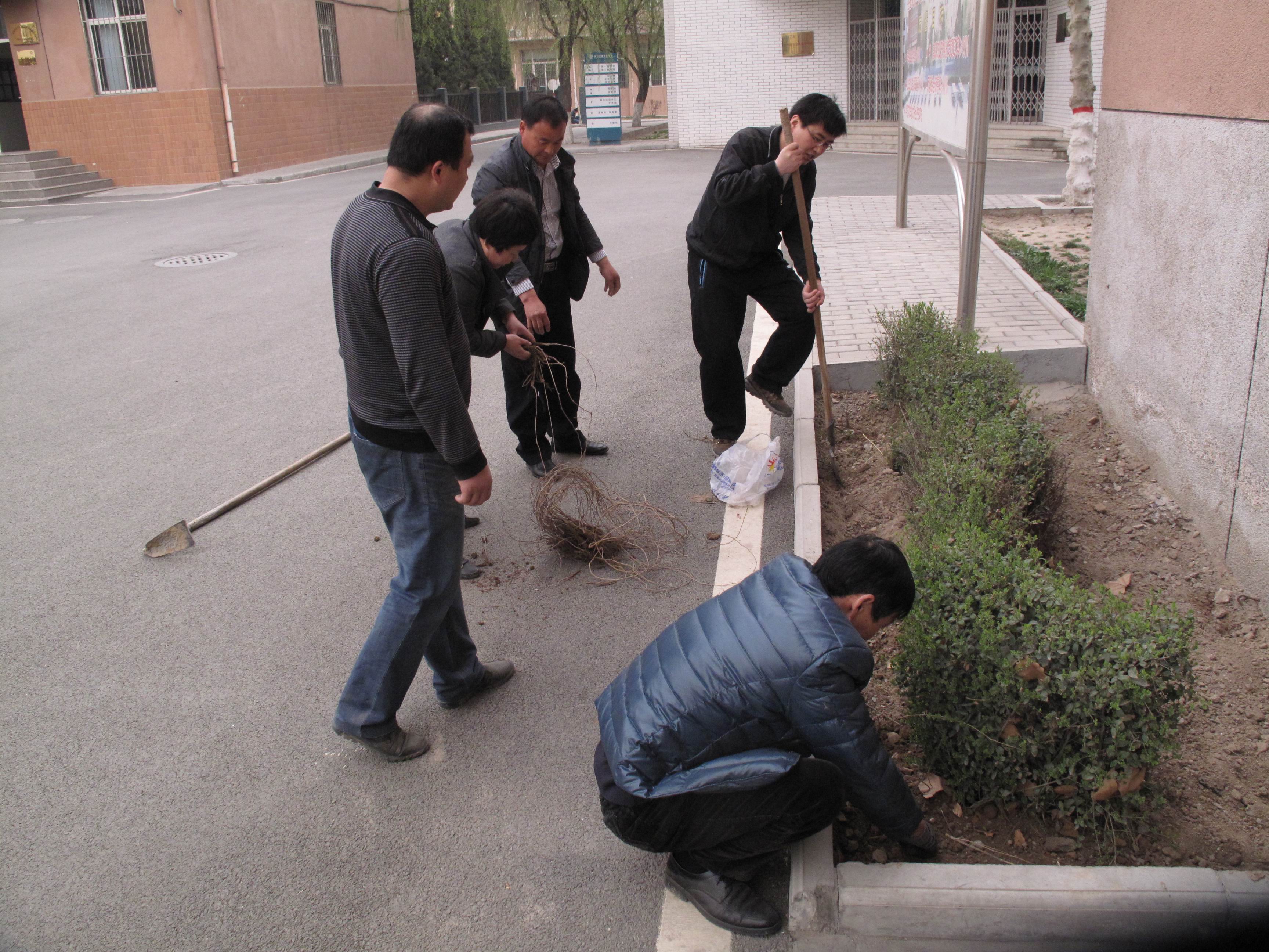 3月12日,后勤处组织全体职工开展了“除草护绿”活动,对大操场花园、澡堂南等绿地区域进行了清除杂草、翻松土壤、浇水等活动,对校园个别楼体外墙边栽植了爬山虎。