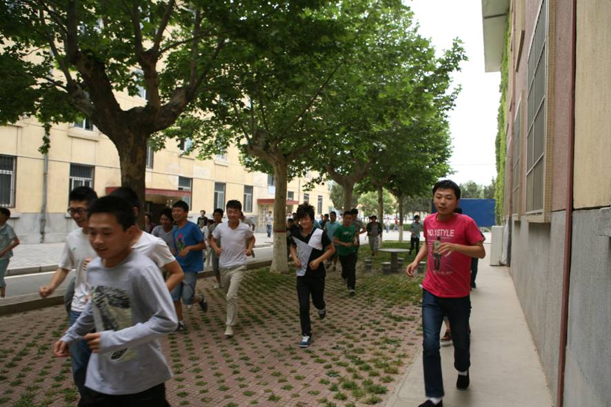 2013年5月15日下午14:30分,学生处组织了学生公寓紧急疏散演练,此次演练受到师生的高度重视。参与疏散演练的全体人员到达指定位置,随着警报声响起,在场的教师指导学生有序的从各个宿舍迅速撤离。整个疏散过程快、静、有序,用时不到2分钟。演练中各岗位人员尽职尽责,整个过程组织严密,疏散演练取得圆满成功。