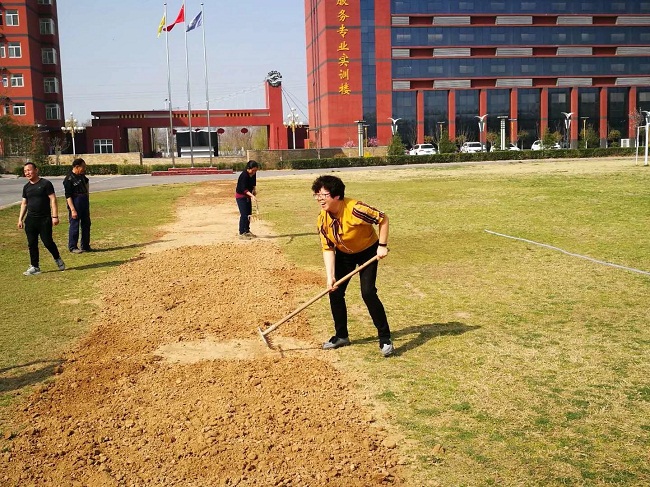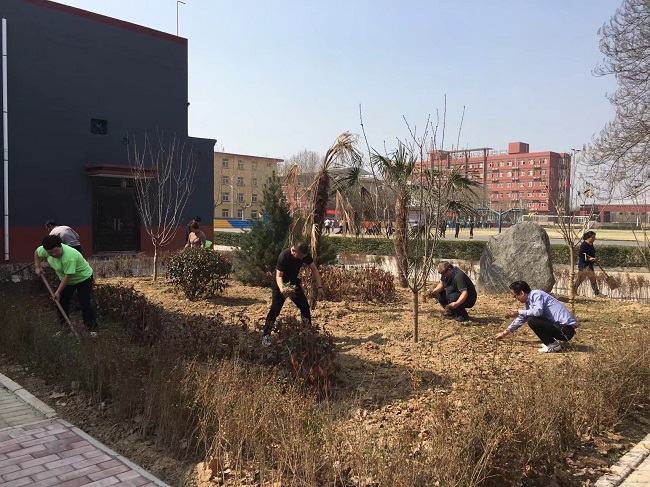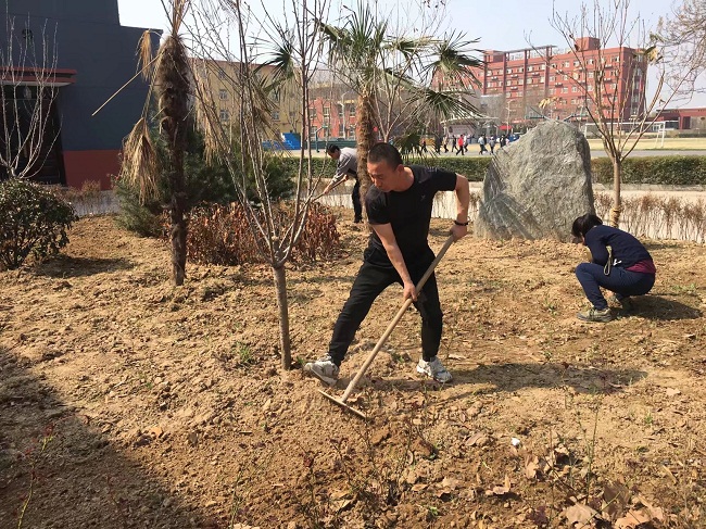 在这春暖花开、植树护绿之季,3月14日下午,工会主席孟祥斌带领后勤处部分员工对新建的“思勤”花园和大操场进行播撒草籽、拔杂草、清理卫生活动。