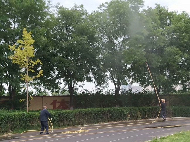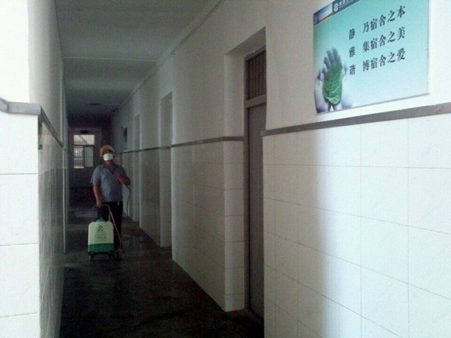 正值夏季,随着气温的不断升高,校园绿化苗木及教学、生活场所各种病媒生物繁殖加快。为了进一步做好校园环境卫生工作,近期,后勤处组织专业人士对校园绿化苗木、教学楼、办公楼、家属院、食堂、浴池、厕所、垃圾池等进行了全面打药防虫、灭蚊灭蝇工作,有效的防控了病菌的滋生,确保了师生健康干净的生活学习环境。