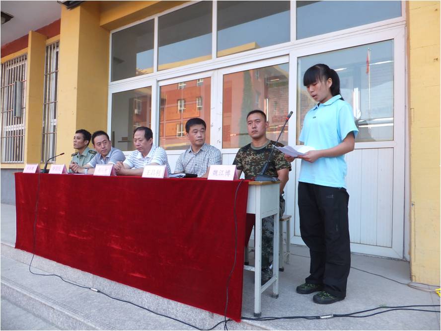 孟平同学代表全体学生发言,同学们都是带着激动、自豪、家长的希望,更是带着对美好理想的憧憬和渴望,来到这个美丽的校园。她决心努力做到:服从命令、听从指挥;苦练基本功,磨练意志;巩固军训成果。