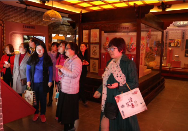 参观景区期间,大家在三秦非物质文化遗产博物馆看到熟悉而又陌生的具有陕西地方特色风土人情,亲切感油然而生,啧啧称奇。在秦腔馆秦腔戏角前一招一式地比划有模有样,饶有兴趣学说陕西方言,辨认方言字写法还不忘相互指导。在国学馆领略感悟传统文化,仔细回味,接受传统文化熏陶,为国学之博大精深震撼折服。