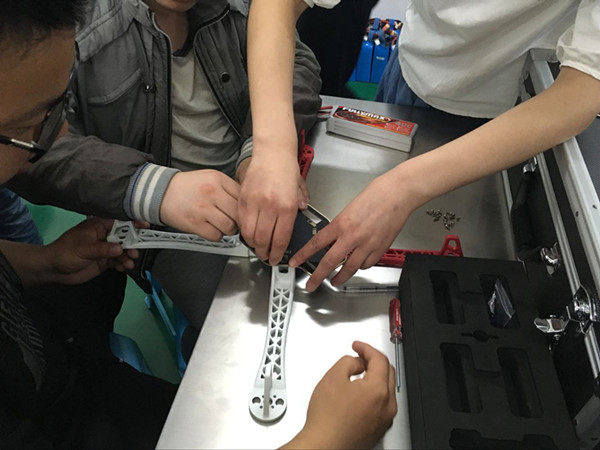 无人机01、02班专业教学开课以来,学院院长杜建忠、副院长张自平、毛兴中,汽车系系主任孙文平、王永琪,专业教师刘荔涛、李彦涛等随堂听课,熟悉掌握教学过程和专业知识、技能。做到认真听取无人机01、02班学生的建议和意见,并及时与北京韦加无人机科技有限公司李金鹏、陈灏两名工程师对授课情况进行交流、沟通,上课教师精心组织,充分利用业余时间加强训练,互动学习,耐心辅导,在短短的时间里,同学们基本熟悉、掌握了无人机起飞前的检查、模拟飞行、组装等技能,考核全部合格。