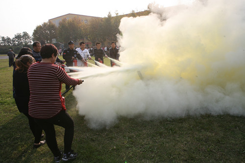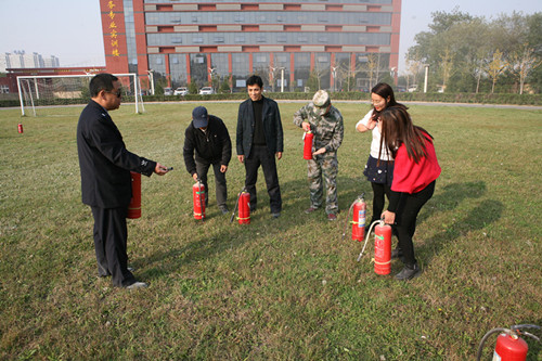 15:20时:大操场进行消防灭火实战演练,各部门安全员、班主任、每班二名学生代表、餐饮中心(超市)等人员依次进行实操演练,演练100多人上场演练,使用110多具灭火器。