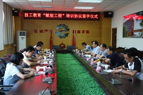 2018年8月7日下午,宜君县就业管理局局长王报春一行七人,根据省人力资源与社会保障厅“技工教育赋能工程”相关文件精神,来我院参观考察,并举行了签字仪式。我院院长杜建忠、副院长毛兴中、党办主任侯玉印、汽车系主任孙文平、公路系主任王景峰、后勤处处长董鹏、招办副主任封胜利参加了此次签字仪式。