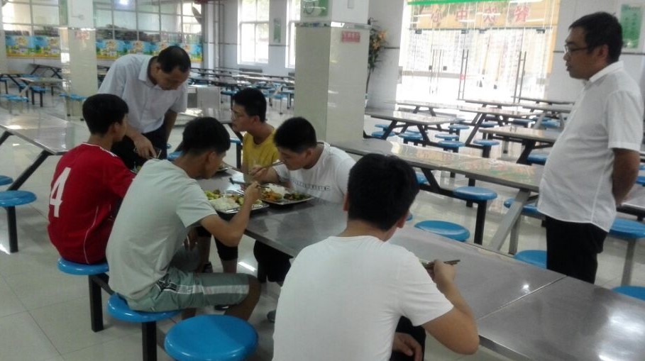 “饭菜味道习惯不习惯?价格和校外的比较贵不贵?”新生开学报名第一天,学院杜院长带队深入学生餐厅、新生公寓,了解新生入校生活情况。