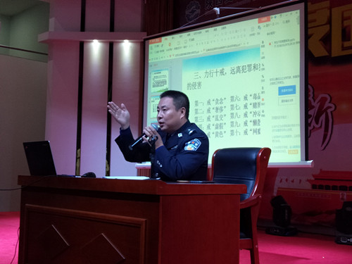讲座中他指出,当代青年学生要遵守国家法律法规及社会公共规范,树立自尊、自立、自强的意识,增强辨别是非和自我保护能力才能适应社会,杜绝违法犯罪现象。