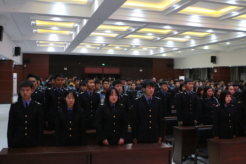 首先,由侯玉印老师宣读《关于学生联合会、团总支主要学生干部职务任免通知》和《关于陕西交通技师学院学生干部肩章佩戴办法通知》文件内容。