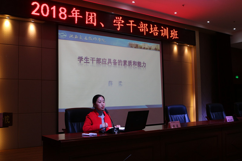为树立学生干部良好作风,提升学生干部基本素质。12月3日晚,陕西交通技师学院2018年团、学干部培训班开班典礼在交通客运服务实训楼学术报告厅隆重举行。院党办主任侯玉印、团委书记王昌利及党办干事薛柔出席了本次开班仪式。大会由李皓老师主持,全院来自各个班级的200余名学生干部参加了开班典礼。