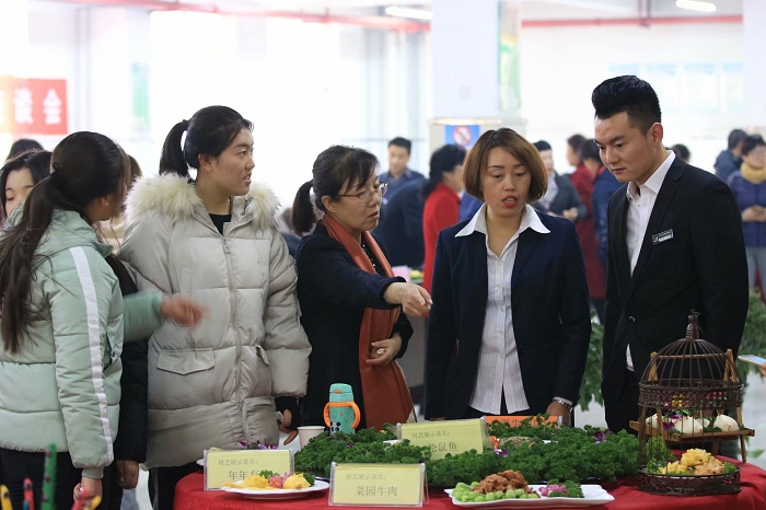 比赛过程异常精彩,热闹有趣,选手们都拿出了看家本领,特别是专业组不论从娴熟的刀工、到位的烹炸、精美的作品完成,充分展示了扎实的技术功底,给在场的观众演绎了一场“舌尖上的美味”。教工组的选手们也不甘示弱,个个热情高涨,专心致志,每个动作有板有眼,制作的菜品经过评委们的品鉴给与了高度肯定,不乏高手在民间。比赛现场,一盘盘色泽艳丽,香味四溢的菜肴和一笼笼热气腾腾面点接连展现在评委和观众面前,赢得一阵阵赞美声,大家纷纷照相留念,热闹非凡。