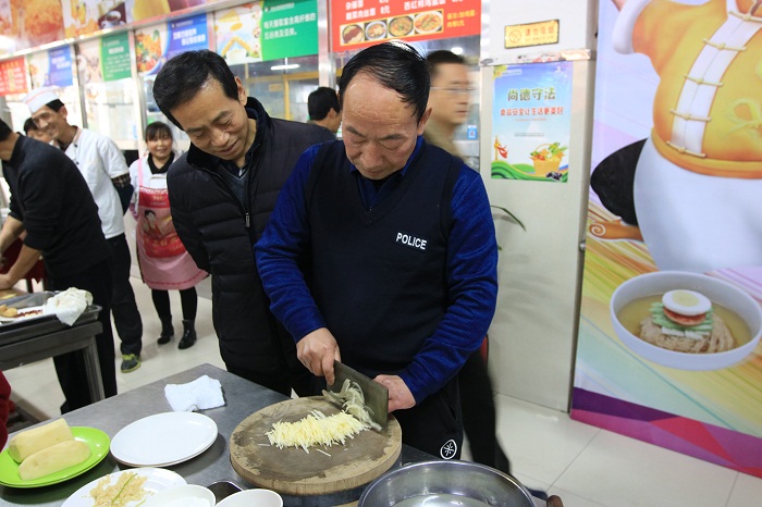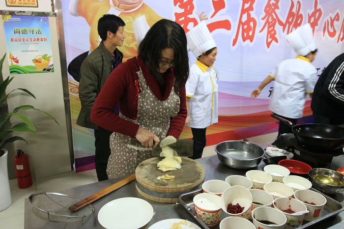 为贯彻落实院工会关于开展职工劳动竞赛活动的工作要求,展现我院后勤职工风采,提升我院餐饮人员业务技能和服务水平,由院工会主办,后勤处承办的“美食出我手、厨艺大比拼”第二届餐饮中心厨艺大赛于12月6日下午在餐饮中心一楼隆重举行。大赛邀请学院财务处长蔡克俭、监察室主任刘玉年、团委书记王昌利、教务副处长严永哲、汽车系老师荆兆丽担任评委。学院院长杜建忠、纪委书记张世西、工会主席孟祥斌等领导出席了本次大赛。大赛由后勤处长董鹏主持。