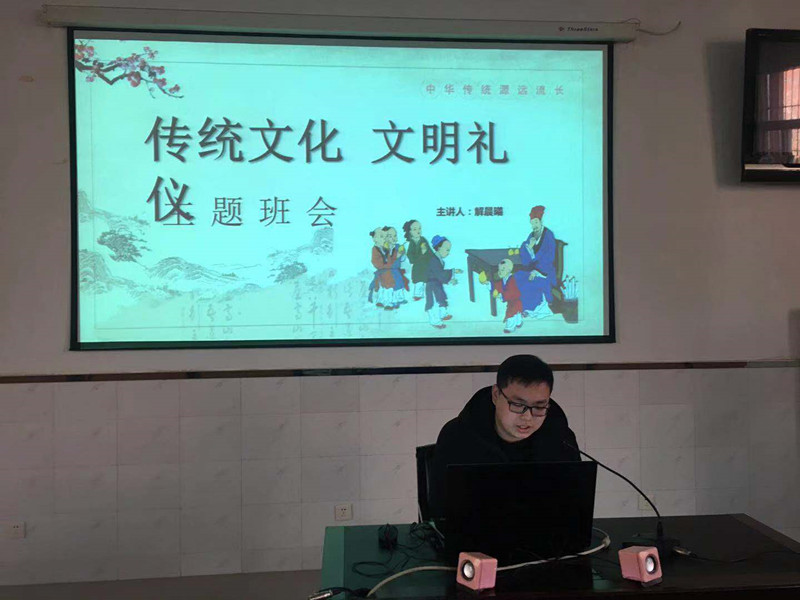 公路97班班主任解晨曦老师以“传统文化、文明礼仪”为主题,向同学们讲解什么是文明礼仪。从学生的实际出发,结合平时日常表现,分析课堂上的文明礼仪和集会时的文明礼仪,使同学们充分认识到自己离文明学生的差距。