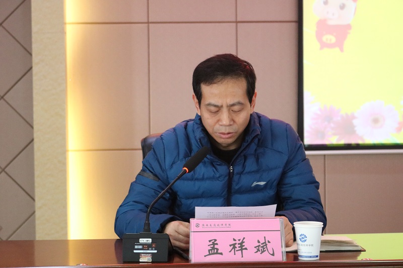 院长杜建忠针对学院面临的新机遇新挑战,从十一个方面对学院2019年工作做了全面具体的安排部署。一是坚持正确的政治方向,不断加强党建工作。二是以永远在路上的坚韧不断加强作风建设。三是提高站位,做好招生就业工作。四是加强师资队伍建设,不断提高教育教学水平。五是不断拓宽培训渠道,努力提升培训质量。六是增强大数据思维,推进智慧校园建设。七是以教育质量提升项目强化优美校园建设。八是加强财务和资产的精细化、规范化管理。九是创新素质教育活动,不断提高学生综合素质。十是多措并举,不断推进平安校园建设。十一是创新帮扶方式,强化“两联一包”工作。