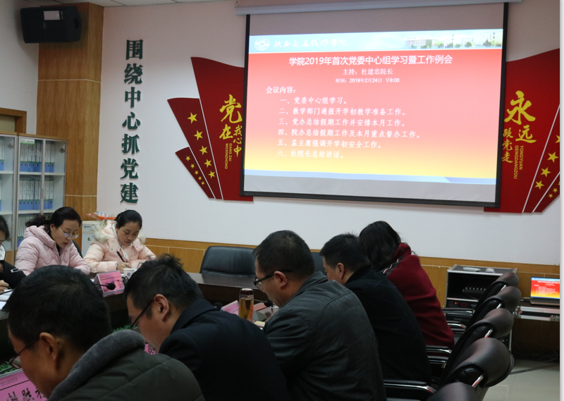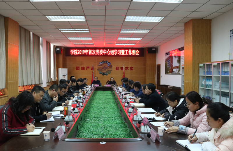 继2月23日学院2019年工作会议之后,2月24日上午,院党政组织召开了2019年学院首次党委中心组学习暨工作例会。会上,全体人员集中学习了省厅重要文件精神,统一思想、凝神聚气,各职能部门就寒假各项工作完成情况及新学期开学准备工作进行了汇报。会议由院长杜建忠主持。