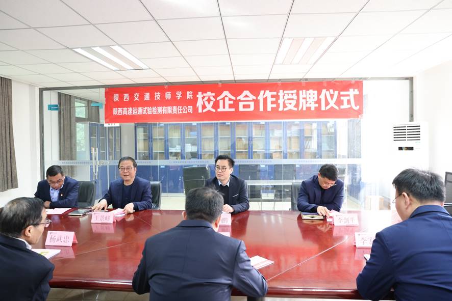 为响应国家人才战略规划,强化职业教育校企合作、促进融合发展,充分发挥校企双方资源优势,为企业培养高素质、高技能人才,同时为学生提供课程观摩、生产实习和就业,提供更大的社会空间。在校企双方友好协商和共同努力下, 2023年3月7日上午,陕西交通技师学院与陕西高速运通试验检测有限公司成功举办了“校企人才战略合作签约及授牌仪式”。此次签约及授牌仪式,学院由董鹏副院长带领教务处、公路系、学生处等部门负责人共同出席,企业由杨武忠总经理、执行董事长、副经理、总工程师等技术骨干参加。