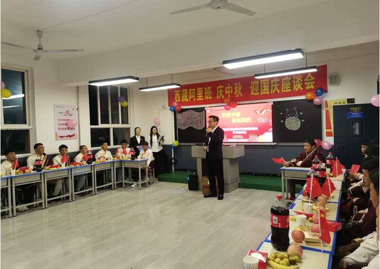 为了让西藏阿里师生过一个愉快的中秋节,学院为他们举行了一场中秋联欢活动。2023年9月29日下午,受院党委书记、院长杜建忠委托,院党委委员副院长董鹏、公路系主任王景峰与西藏阿里班师生一起度中秋、迎国庆。