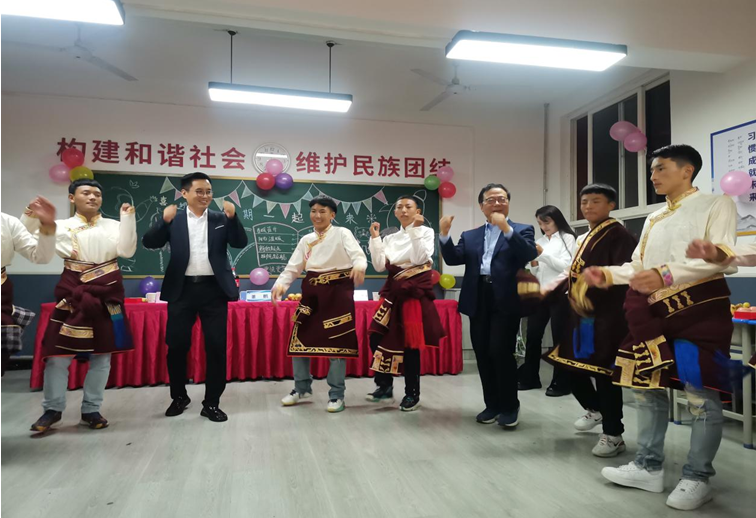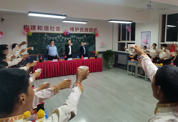 董鹏副院长谈到,习近平总书记在中央民族工作会议上作出重要指示,要加强中华民族大团结,增强文化认同,建设各民族共有精神家园,积极培养中华民族共同体意识。陕西交通技师学院对西藏阿里学生的委培教育,就是落实国家民族教育政策、为西藏培养建设者的重要体现,希望同学在学院努力学习,将来建设好自己的家乡。同时,希望同学们度过一个美好快乐的中秋之夜,感受“家”的温暖。