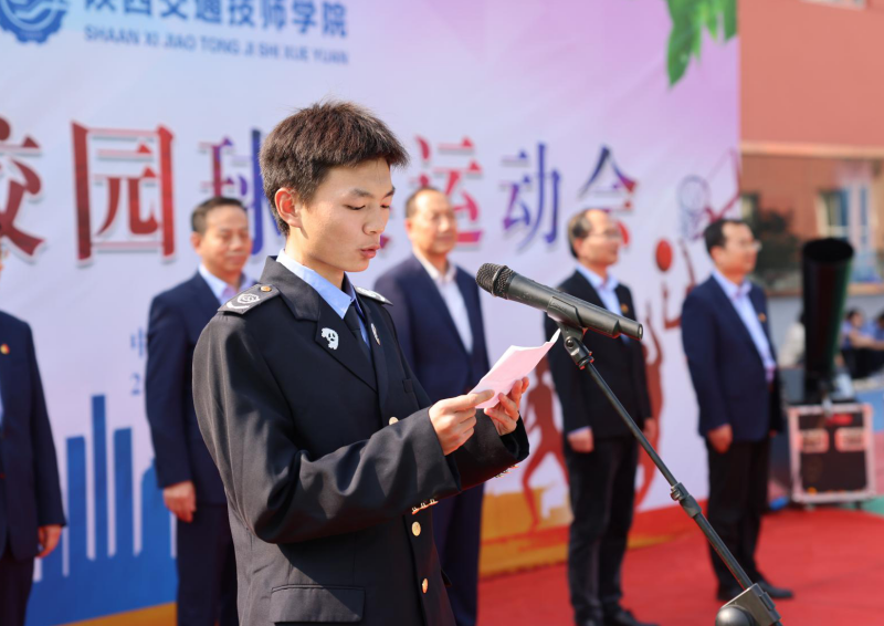 “陕西交通技师学院第六届校园球类运动会开幕!”学院党委书记院长杜建忠宣布。