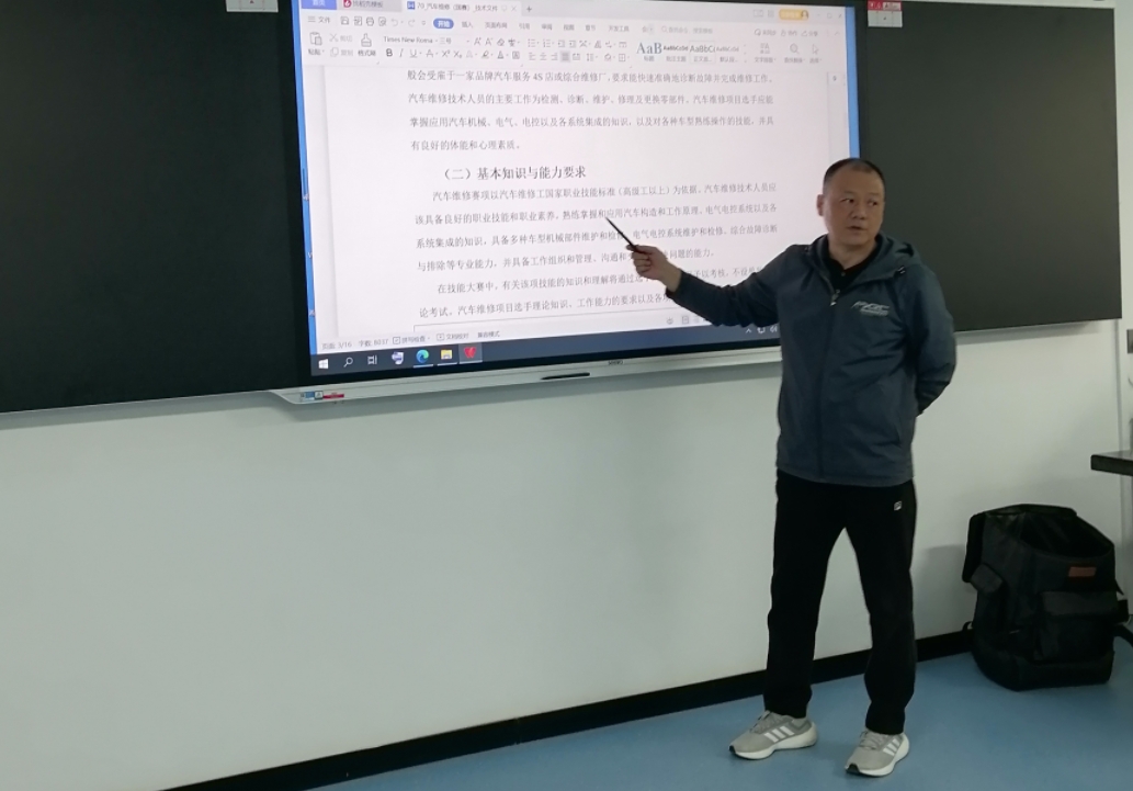 随后,汽车系主任孙文平对第二届全国职业技能大赛国赛项目汽车维修竞赛情况做了介绍,重点对竞赛选手应具有的基本知识与能力要求,比赛时间、评分标准、评判方法和样题等技术方面进行了解读。