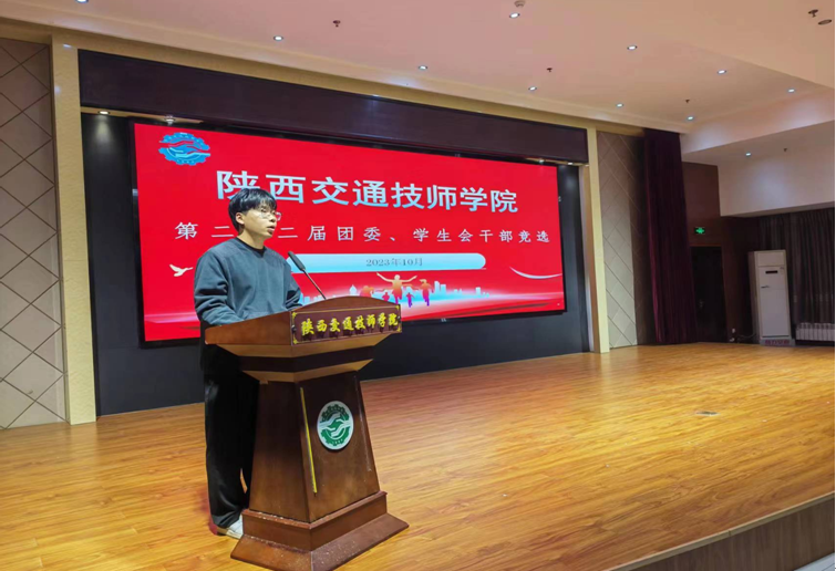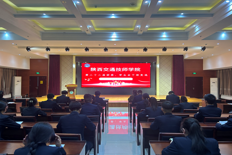 陕西交通技师学院第二十二届团委、学生会干部竞选大会于10月25日晚19:00在学术报告厅举行,参加本次大会的有团委委员、班主任李宇航老师、教师代表宋淳子老师,第二十一届主席团成员及参加竞选的团委、学生会成员。