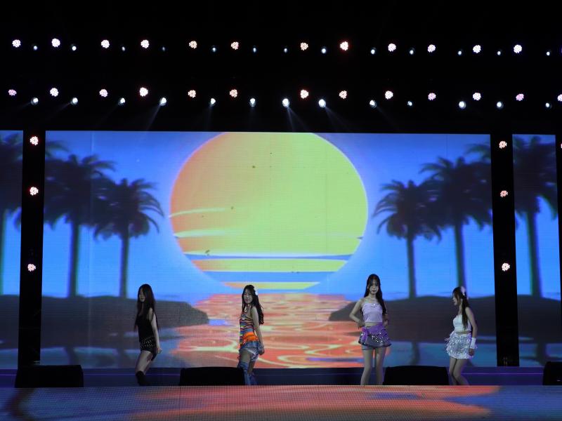 晚会的节目丰富多彩,令人目不暇接,舞台上灯光绚烂交织,音乐激昂澎湃。学生们灵动的舞姿展现着青春的朝气与活力。