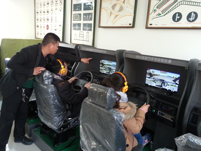 在进行现场过程中,检查人员在驾校多媒体电化教学室认真听取了教练员对学院的教学指导课,饶有兴趣坐上全景驾驶训练模拟器亲自感受现代教学手段在现代驾驶训练中的应用,在科目一训练室查看学员网上模拟考试,询问学员训练情况,在汽车基础知识学习室观看学员上课情况。