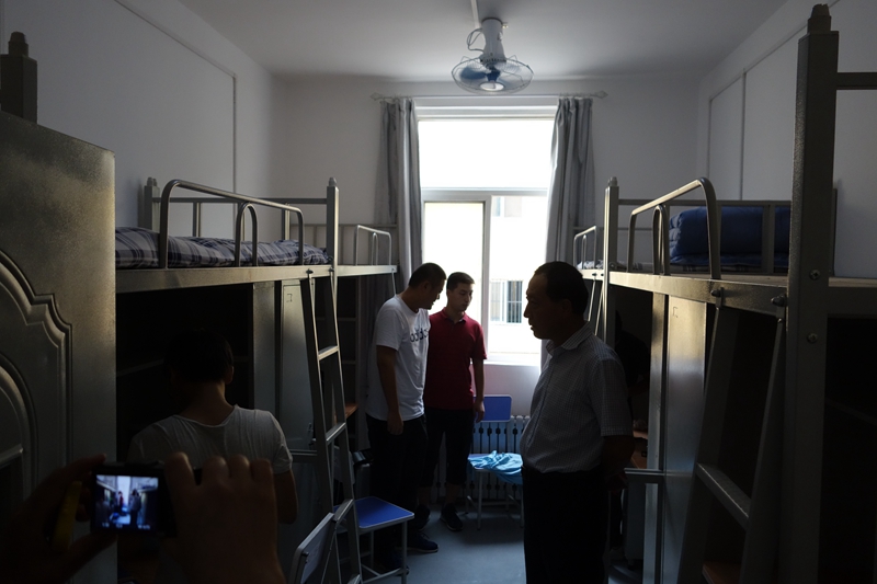 在学生公寓,院领导与学生交谈,详细询问学生使用情况,在实地察看公寓卫生间使用情况;走进新改造的计算机房观摩了现代教学设备的运行情况,在学术报告厅和多功能室,院领导亲自体验感受座椅,站在讲台上亲自操作和感受多功用讲台,在监控室现场查看了校园监控系统改造项目使用效果;在汽车维修专业实训基地,院领导详细察看一体化教室分布,设备摆放,详细询问专业教学仪器设备安装调试到位及教学准备状态;在高速公路运营管理专业实训楼建设现场,详细听取了后勤处负责同志介绍学院新校门及校园文化景观建设规划设计布局。