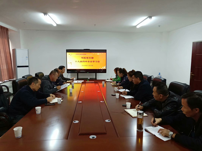 按照省委教工委、省教育厅关于组织学习《中共中央关于坚持和完善中国特色社会主义制度 推进国家治理体系和治理能力现代化若干重大问题的决定》的通知精神,结合学院主题教育领导小组工作安排,11月7日,驾校支部在培训大楼六楼召开党的十九届四中全会学习会。会议由支部书记刘锋伟主持,全体党员干部参加。