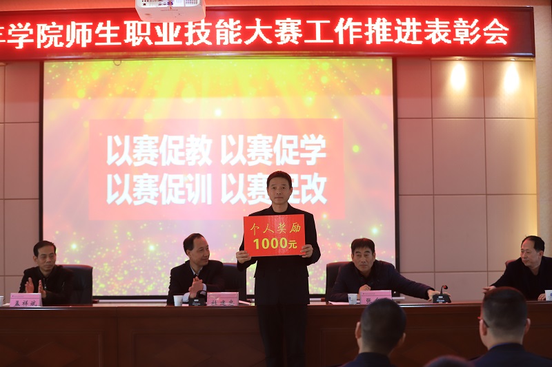 11月14日下午,学院召开了2019年师生职业技能大赛工作推进表彰会。在家院领导、全体教职员工、学生代表共计300余人参会。院长助理董鹏主持会议。