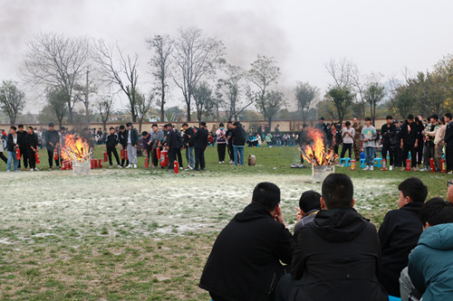 随后在学院大操场消防灭火实战活动开始,各部门安全员、班主任、每班名学生代表、餐饮中心(超市)等人员依次进行实操演练,演练90多人上场演练,使用90多具灭火器。