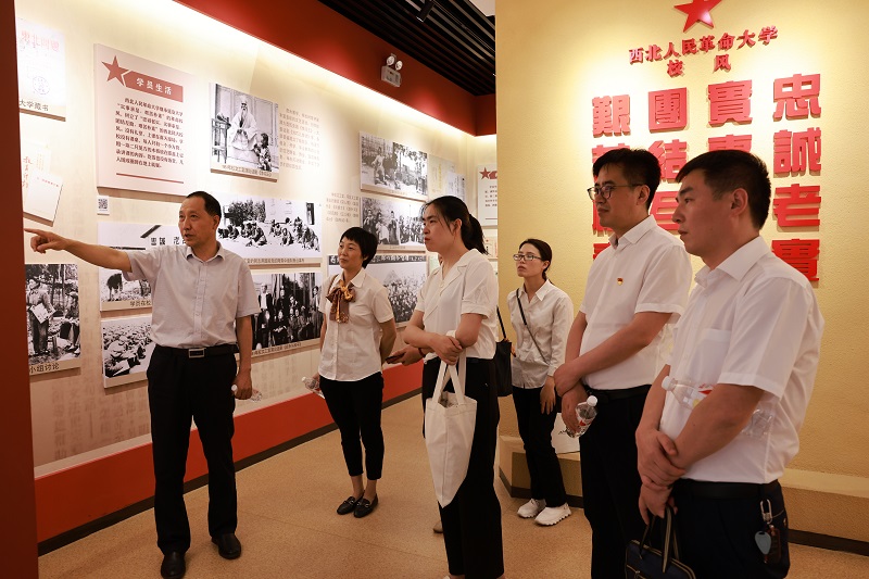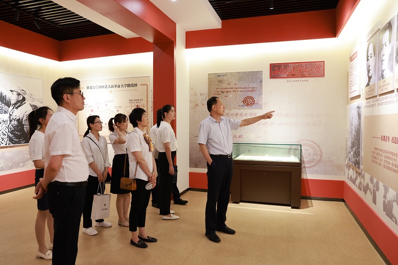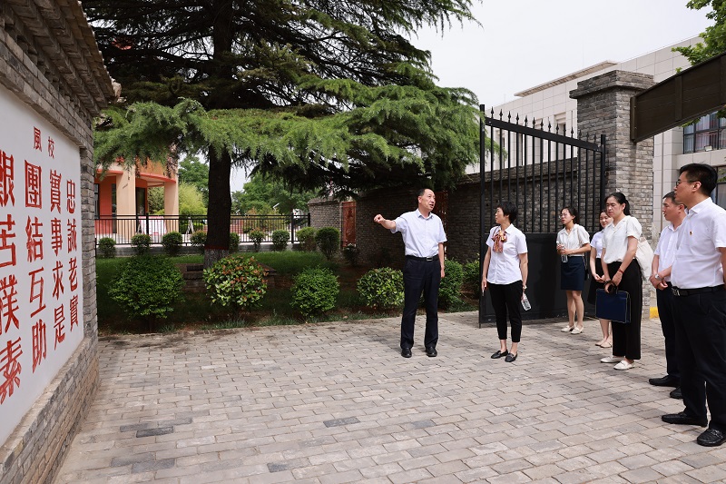 本次活动,杜建忠院长亲自挂帅,担任讲解员,大家跟随杜院长的详细解说,了解西北人民革命大学是由延安大学、西北人民艺术学校、西北财经学校合并成立的一所短期培训班式学校,于1949年5月成立,同年10月迁址高陵通远,1953年,西北民大改组为西北政法干部学校。1954年,更名为中央政法干部学校西北分校,后经多次变革发展为现在的西北政法大学,学校在高陵的四年,共为西北地区培训一万两千余名党政和专业干部,有力地支援了西北地区人民解放战争的最后胜利和新区政权建设。