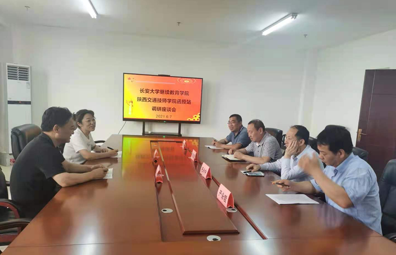 6月7日,长安大学继续教育学院副院长齐利华、招办主任夏旭一行到我院调研,我院函授站站长、学院副院长苏东阳、副院长毛兴中、招办主任封胜利、教务处副处长严永哲参加了座谈会。