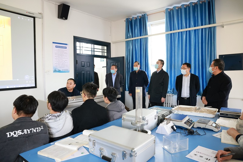 高岭副厅长在学院党委书记、院长杜建忠等领导班子成员的陪同下,先后到学院大门防控区、培训中心、学生澡堂、学生公寓、隔离室、食堂、公路交通检测中心、汽车专业实训基地、教室等地,通过实地察看、现场问询等形式,详细了解学院开学准备、疫情防控、校园公共卫生、食品安全及饮用水安全、医疗保障、校园安全等工作开展情况。检查中,高岭副厅长深入教室与学生进行亲切交流,详细询问学生在校学习、生活等情况。