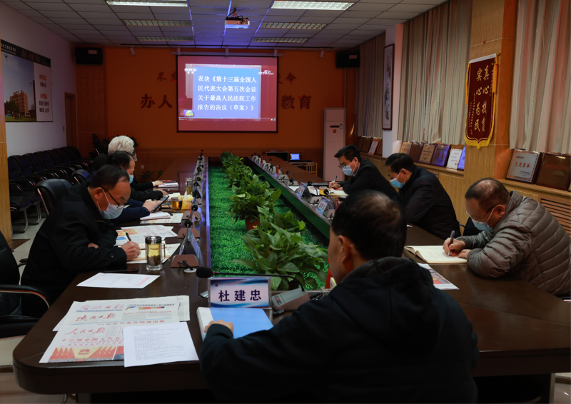 院党委书记、院长杜建忠要求:要把学习宣传贯彻习近平总书记重要讲话和全国两会精神作为当前一项重大政治任务,深刻领会“五个必由之路”“五个有利条件”的重大论断,增强胸怀“国之大者”、善谋“党之大计”的责任感使命感,落实立德树人根本任务,切实做好中等职业教育。要把学习贯彻全国两会精神与学习贯彻习近平总书记关于教育的重要论述和对陕西教育的重要指示批示精神结合起来,继续做好校企合作、产教融合、中高职衔接等工作。要围绕全省经济社会发展大局,培养新时代技能人才,助力我省追赶超越。要统筹抓好疫情防控和教育教学工作,重点抓好校园封闭管理、防疫物资储备、全员核酸检测、线上教学等工作,全力做好疫情防控各项工作,坚决守住校园疫情防线。