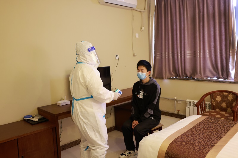 本次演练共设多个场景,分别模拟学生返校报到、入住宿舍、学生用餐、突发状况等各领域全方位演练。特别对学生返校的“两码一酸”查验、体温监测以及出现疑似病例等进行重点演练。
