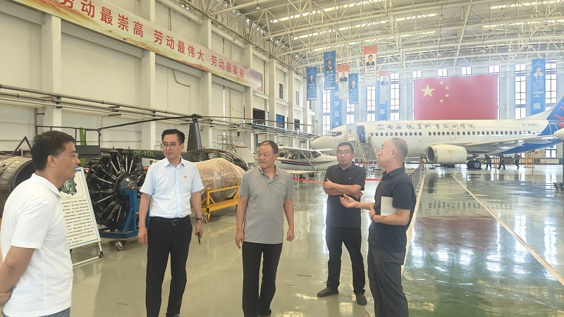 调研组一行首先参观了西航职院航空飞机维修工程中心、无人机应用服务中心、航空管理工程学院。深入了解西航职院产教融合实训基地建设以及航空类专业建设情况。随后,双方在西航职院办公楼第三会议室开展座谈交流。